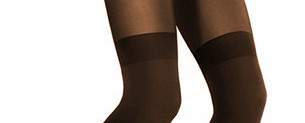 Blickdichte Mikrofaserstrumpfhose (60den) bis übers Knie – darüber Feinstrumpf (20den) – passend zu beige-braunem Outfit